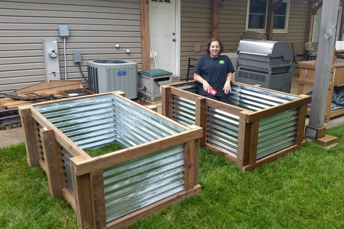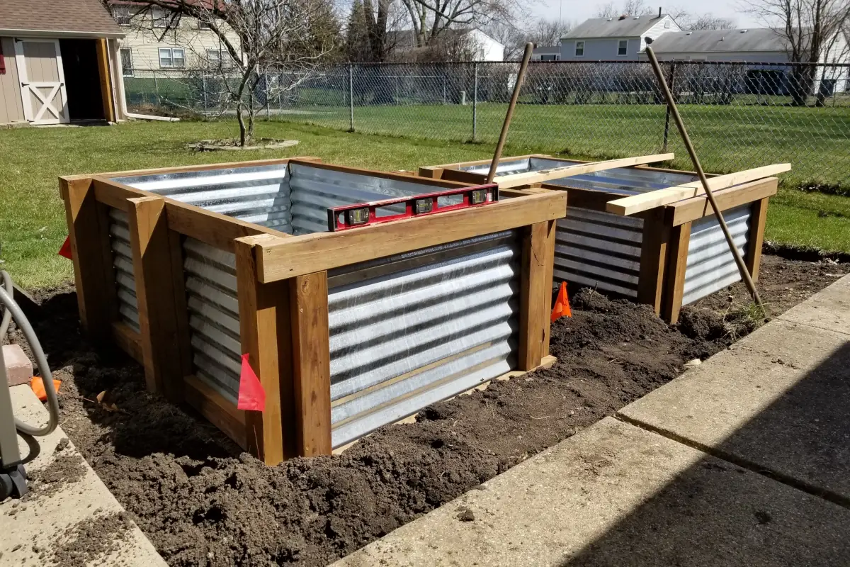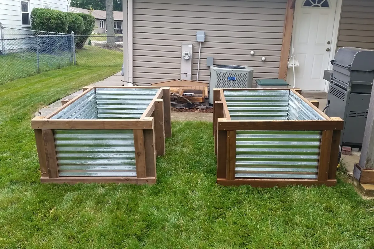 In researching ideas for a design of the new raised beds, I really liked the looks of the ones made with corrugated metal roofing panels. I came across someone’s post where they made them and included all of the parts they used to make them. For the life of me I can’t find that post now, but if I do, I’ll link to it here. I can’t take credit for someone else’s plans.